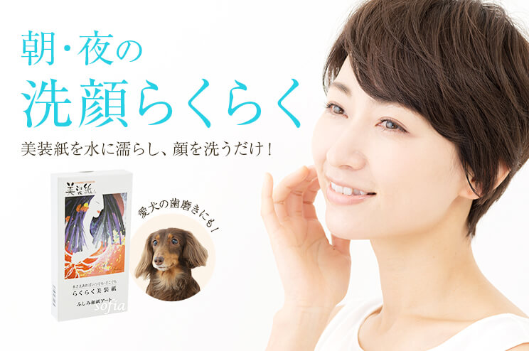 美装紙を水に濡らし、顔を洗うだけ!と簡単で、お肌にも優しい商品です。