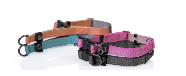 ユニークなデザインでマーチンゲールカラーとしても使用可能。マーチンゲールカラーとは、引っ張れば締まるものの、完全には締まらないようになっている首に負担の少ない首輪のこと。